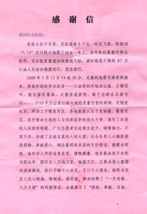来自灾区江油的一封感谢信