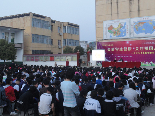18:45,讲座正式开始。首先学校教务处负责人对李绍亭主任等一行3人进行了简略的介绍,表示热烈欢迎,对我院关爱青少年成长的行动表示热烈支持,同时要求学生们做好笔记,并将自己在日常学习、生活中的生理、心理方面的迷惑当场请专家进行解答。